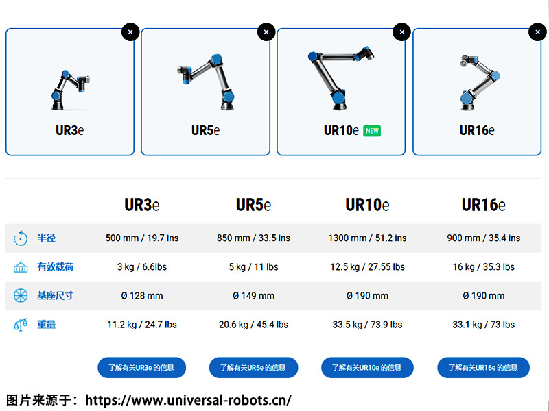 圖片來(lái)源于優(yōu)傲機(jī)器人官網(wǎng)機(jī)器人手臂截圖