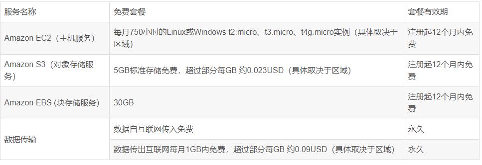 由于亞馬遜云科技服務(wù)種類較多,且計(jì)費(fèi)詳細(xì),很多用戶有些看不懂,所以對使用亞馬遜云望而卻步。其實(shí)亞馬遜云科技很多服務(wù)都有免費(fèi)套餐,以讓用戶體驗(yàn),這些服務(wù)的免費(fèi)套餐,搭建一個(gè)私人網(wǎng)盤綽綽有余。由于亞馬遜云海外區(qū)僅需個(gè)人信用卡就可以注冊,所以我們以海外區(qū)為例。我們可以從以下鏈接亞馬遜AWS海外區(qū)域賬戶免費(fèi)套餐_免費(fèi)云服務(wù)-AWS云服務(wù) 看到亞馬遜云哪些服務(wù)具備免費(fèi)套餐: