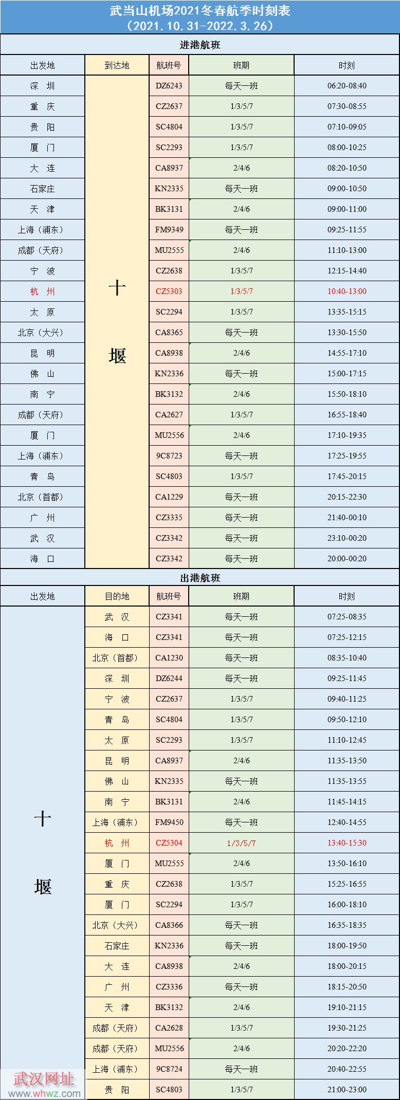 武當(dāng)山機(jī)場(chǎng)最新航季時(shí)刻表